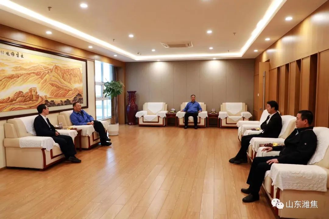 4月21日上午,集團董事長劉良玉在薛城園區(qū)運營中 心會見中國工 商銀行棗莊分行行長孫吉軍一行,薛城能源公司總經(jīng)理楊明正陪同。